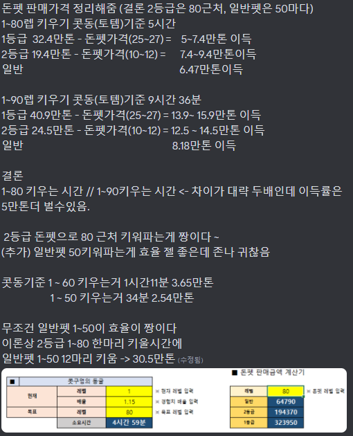 가장 돈을 많이 버는 것은 돈펫 퀘스트만 진행하면서 허환을 하는 것이라고 합니다.